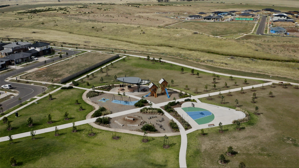 Preliminary site works have begun at the brand-new Rosso Drive Park, the proposed 2.41-hectare reserve positioned directly south of Pomodoro Road in Stage 13. The stunning landscaped greenspace is anticipated to open to the public in late Q2 – early Q3 2023, and will consist of walking trails, sheltered BBQ areas, restroom and drink fountain facilities, as well as exercise equipment. An adventure playground with trampolines, pendulum swings, and an exciting ‘Kanope Tower’ will provide a fun and active space for children and families to create lasting memories.
